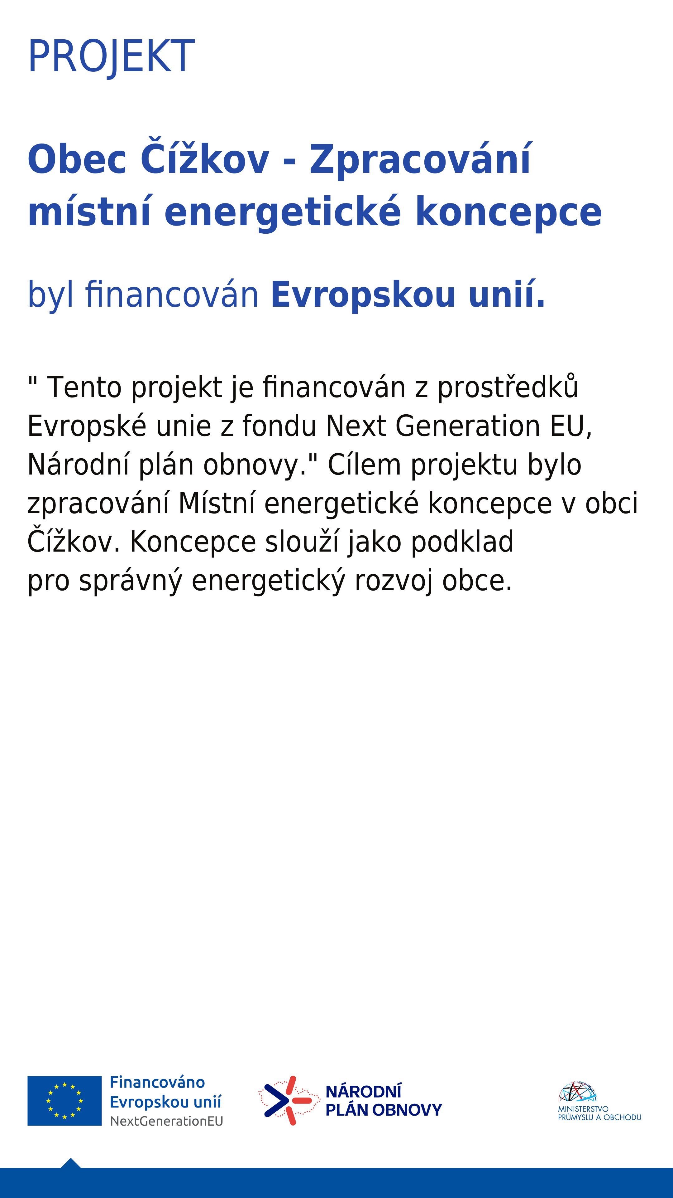 Projekt OBEC ČÍŽKOV - Zpracování místní energetické koncepce byl financovám Evropskou unií.
